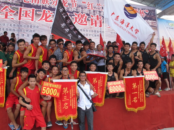 广西毛南族全国龙舟邀请赛共举办了6年。本次邀请赛设小龙舟:区际男子组1000米、500米,县内男女组1000米、500米;标准龙舟:男子1000米等七个竞赛项目,共有78支代表队1000多名运动员参加。其中区际龙舟男子组有10支代表队,取预赛前六名与县内男子预赛第一、二名进行决赛。必赢app两支龙舟队分别参加小龙舟区际男子1000米、500米的竞赛。