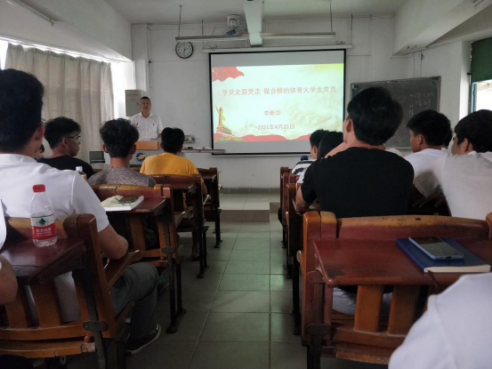 李新华书记以“学党史跟党走 做合格的体育大学生党员”为题,给同学们上了一堂生动的党史学习教育辅导课。首先,他介绍了开展党史学习教育的背景与意义,强调学习百年党史,就是学习中华民族的百年奋斗史,在学习中深刻感受我党的先进性和中国特色社会主义制度的无比优越性。随后,他从为什么要开展党史学习教育、学习党史重点学什么、学习党史怎么学等五个方面进行阐述。他鼓励同学们在学习百年党史的基础上,深刻认识红色政权来之不易、新中国来之不易、中国特色社会主义来之不易,深刻认识中国共产党为什么能、马克思主义为什么行、中国特色社会主义为什么好,不断坚定“四个自信”,不断增强历史定力,增强做中国人的志气、骨气、底气。