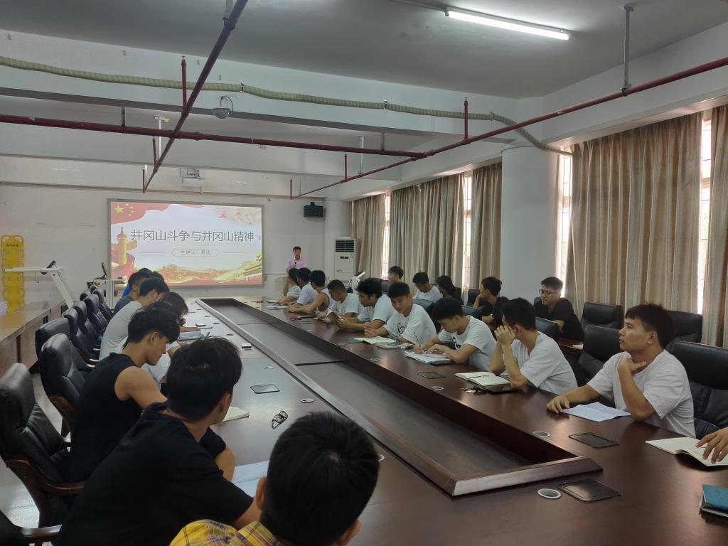 蔡书记主要从四方面进行讲解:1.井冈山革命根据地概况;2.井冈山斗争;3.井冈山精神;4.大学生如何弘扬井冈山精神。