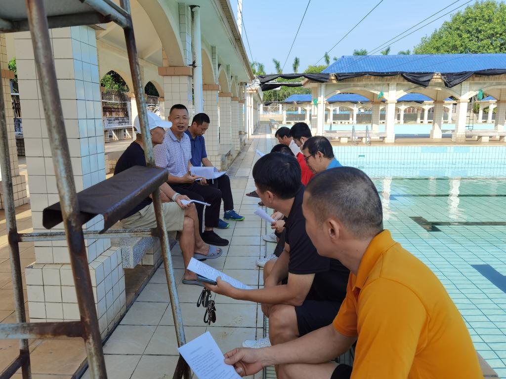 会后,在李新华的带领下到游泳池现场对游泳池的场地及设施器材进行了全面的检查。要求大家时刻紧绷安全这根弦,有担当意识,做好记录,确保不发生安全事故。顺利完成本学期教学训练任务和课外开放活动。