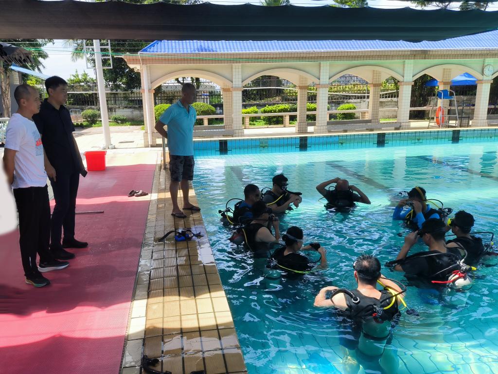 (水上教研室)在游泳池举办潜水教研活动。此次活动旨在提高教师的潜水教学技能,促进潜水运动的普及与发展,加强师生之间的交流与合作。