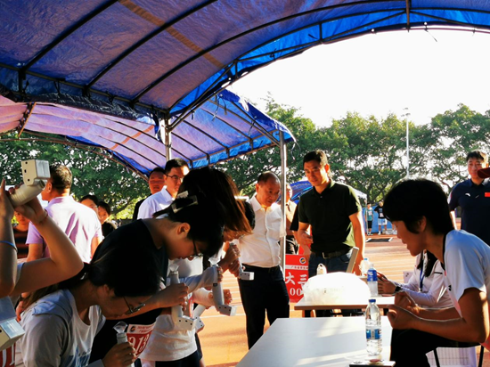领导、辅导员现场督促,为测试的学生加油鼓劲;体院积极配合工作组完成测试器材及场地布置工作,并安排10位体育教师50名志愿者全程参与配合工作;抽测现场设置补给站,为测试学生提供宝矿力、矿泉水、食物等能量补给;学校配备了医生、护士以做好测试现场的医疗保障;测试学生态度认真,精神面貌好,配合度高;工作人员分工协作、配合默契,全体师生团结一心,共同为抽测工作的顺利进行提供坚强保障。整个测试过程安全、高效、有序,保障到位,得到了工作组的高度认可,本次体测得到志愿者队伍的倾力协助、引导员队伍的细致指引、医疗团队的全程守护,在各方共同努力下,顺利、安全、高效地完成了本次测试工作。