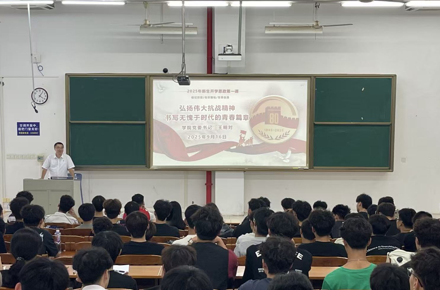 党委书记王明对以“弘扬伟大抗战精神,书写无愧于时代的青春篇章”为题,为2025级新生讲授了一堂深刻而富有意义的“思政课第一课”。