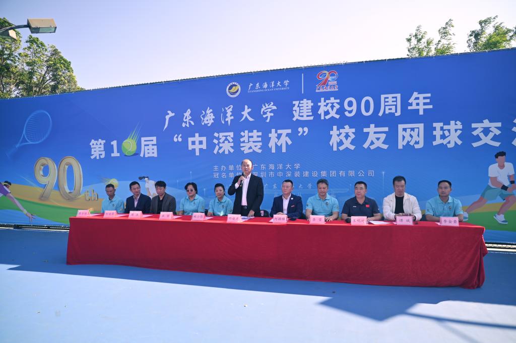 学校党委常委、副校长邓逢光,深圳市中深装建设集团有限公司董事长、深圳校友会会长柯颖锋出席开幕式并分别致辞,2022 级学生曹泽承代表在校学子送上真挚祝福。湛江移动公司副总经理詹艳桃、湛江网球协会会长李常、揭阳市网球协会会长林小影、快能 (东莞) 体育科技有限公司总经理张丽和必赢官网