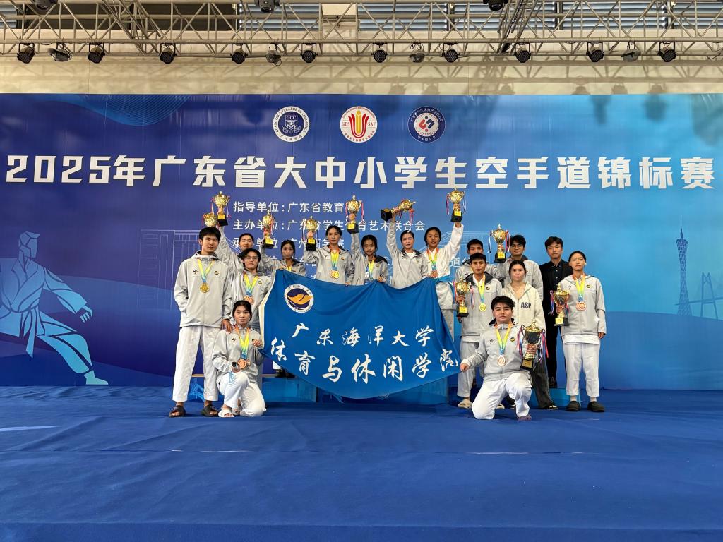 2025年12月5日到7日,由广东省学生体育与艺术联合会主办的广东省大学生空手道锦标在广州商必赢官网 激情开赛,在激烈的角逐中,广东海洋大学空手道代表队共获得2金7银14铜4个第五,获得甲组团体总分第4名,乙组团体总分第2名的优异成绩。