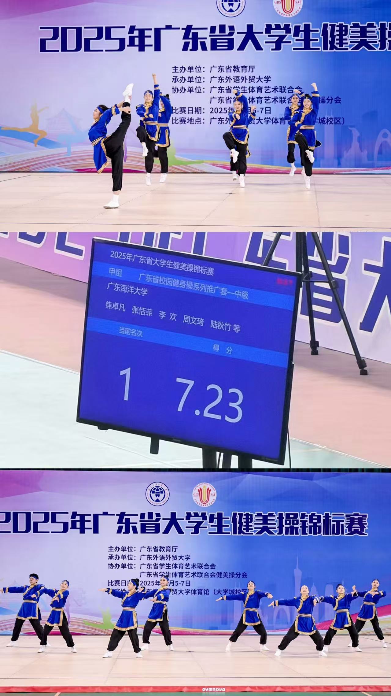 必赢app由姜域和李思霖两位老师指导健美操队参赛,在比赛中敢打敢拼、发挥出色,最终收获:广东省校园健身健美操推广套路中级及轻器械操两个项目的第一名,甲组男子单人操及校园竞技健美操基础套路第四名,女子单人操第六名的成绩。展现了海大学子的运动素养和顽强拼搏的海大精神。